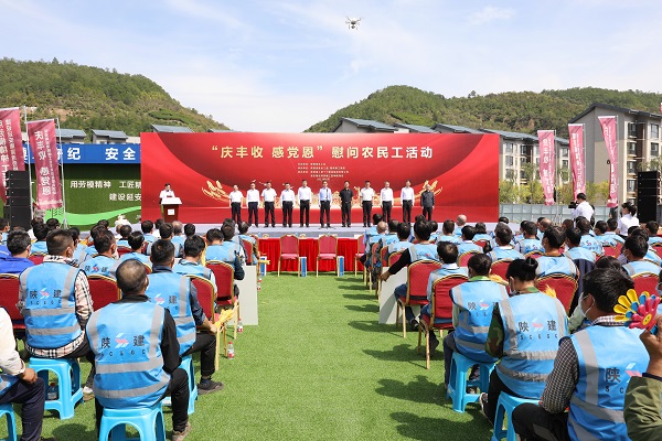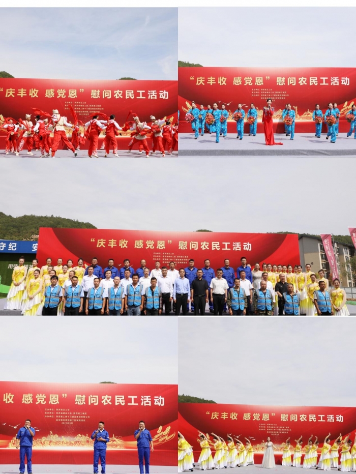 在第四個(gè)“中國(guó)農(nóng)民豐收節(jié)”到來之際,9月22日,陜西省總工會(huì)走進(jìn)陜建十三建集團(tuán)延安南泥灣勞模工匠學(xué)院項(xiàng)目,開展“慶豐收、感黨恩”慰問農(nóng)民工活動(dòng)。