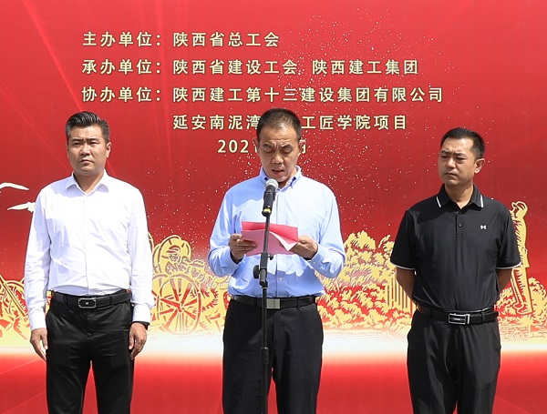 陜西建工集團(tuán)黨委常委、副總經(jīng)理劉小強(qiáng)在致辭中表示陜建作為我省最大的國(guó)企建筑鐵軍,在省委、省政府的領(lǐng)導(dǎo)下,在70余年的發(fā)展長(zhǎng)河中,建設(shè)了一大批國(guó)防、科教、文衛(wèi)、公共服務(wù)等重點(diǎn)項(xiàng)目,積極服務(wù)于陜西發(fā)展和國(guó)家建設(shè),既有深厚的文化積淀,又有雄厚的綜合實(shí)力。有幸承建延安南泥灣勞模工匠學(xué)院這個(gè)重點(diǎn)項(xiàng)目,我們倍感榮幸,倍加珍惜。我們已將該項(xiàng)目列為十三建集團(tuán)的“一號(hào)工程”,調(diào)集精兵強(qiáng)將,以“出手必須出彩,完成必須完美”的作風(fēng)、“開局就是決戰(zhàn),起步就是沖刺”的魄力,“努力到無能為力,拼搏到感動(dòng)自己”韌勁,科學(xué)合理、協(xié)調(diào)高效的管理模式,將項(xiàng)目建設(shè)成為優(yōu)質(zhì)結(jié)構(gòu)工程、綠色施工示范工程,爭(zhēng)創(chuàng)魯班獎(jiǎng),為省總工會(huì)交上一份滿意的“答卷”。