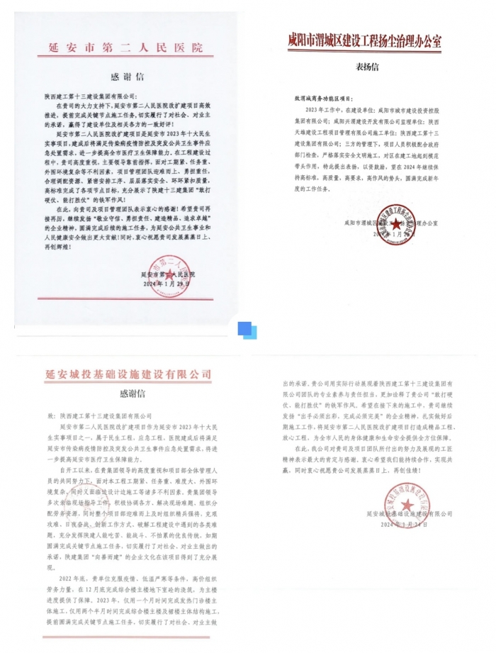以誠(chéng)信獲贊譽(yù)!集團(tuán)兩項(xiàng)目收到建設(shè)單位感謝信、表?yè)P(yáng)信!
