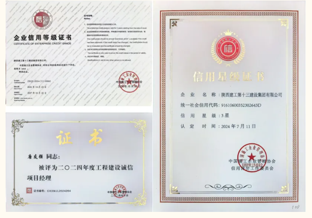 近年來,陜建十三建集團(tuán)高度重視企業(yè)信用建設(shè),堅(jiān)持把誠信經(jīng)營作為企業(yè)高質(zhì)量發(fā)展的基石,秉承“敬業(yè)守信、勇?lián)?zé)任、建造精品、追求卓越”的企業(yè)精神,在堅(jiān)定屬地市場的同時(shí)持續(xù)開拓域外市場,不斷壯大主業(yè)規(guī)模,樹立良好的口碑和品牌形象;踐行“四新”戰(zhàn)略,拓展新領(lǐng)域、新業(yè)態(tài),助推企業(yè)轉(zhuǎn)型升級和高質(zhì)量發(fā)展;加強(qiáng)工程項(xiàng)目精細(xì)化管理,守好安全底線,嚴(yán)把質(zhì)量關(guān),推動項(xiàng)目實(shí)現(xiàn)優(yōu)質(zhì)履約;提升內(nèi)控工作水平,強(qiáng)化制度建設(shè)與風(fēng)險(xiǎn)防控,保障企業(yè)規(guī)范平穩(wěn)運(yùn)行。集團(tuán)先后榮獲延安市建筑業(yè)AAA級信用企業(yè)、陜西省信用協(xié)會信用建設(shè)先進(jìn)單位。